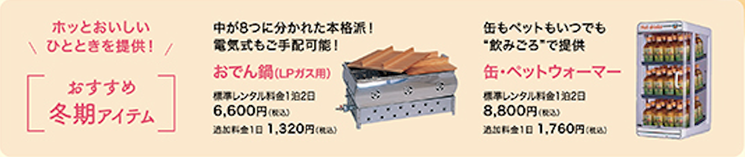 缶・ペットウォーマーや、おでん機などのアイテムも取り揃えています!