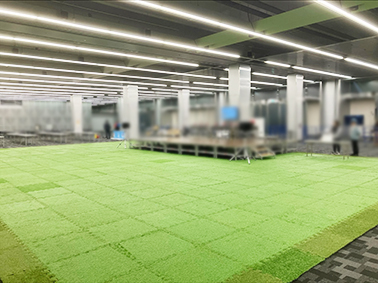 体育館内の競技(バスケやバレーボールなど)で、観覧席下を養生することができます。会場を汚さず安心して大会が開催できます♪